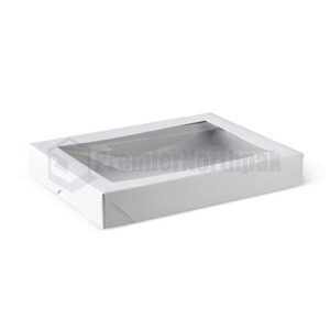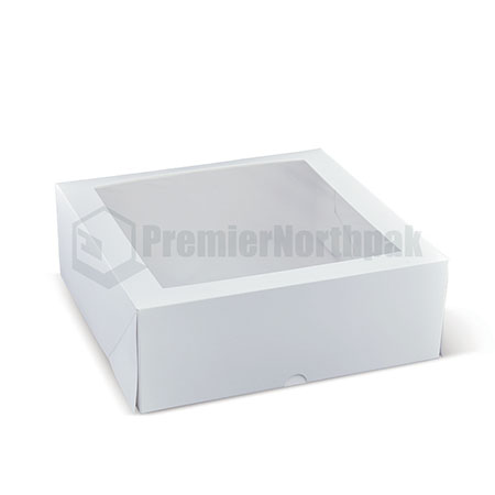 * Premium cake boxes with a large viewing window to show off your cakes, pastries and muffins. Light claycoat on the inside provides protection against grease.