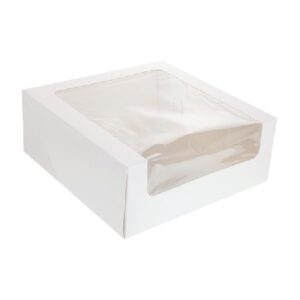 * Premium cake boxes with a large viewing window to show off your cakes, pastries and muffins. Light claycoat on the inside provides protection against grease.