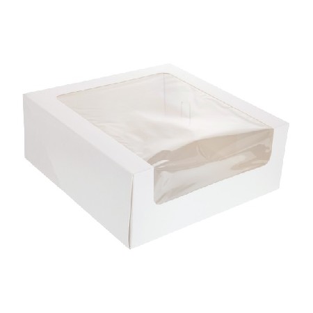 * 9X9X4 INCH WHITE CAKE BOX W/ WATERFALL WINDOW