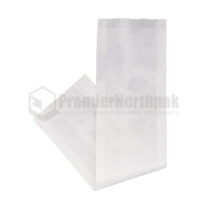 * White paper bags made with food safe bleached kraft paper. The gusset provides increased capacity ideal for packaging bread. Australian made using forestry certified sustainable paper.
