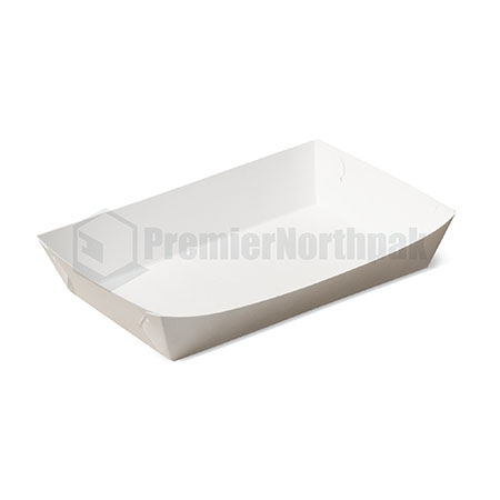 * Streamlined quick serve food trays are elegantly designed to enhance food presentation. Pre-assembled for convenience and made from high quality PE coated Paperboard. Grease-resistant, eliminating the need for a liner. Perfect for hot and cold ready to eat foods, the sturdy edges keep product upright and make trays suitable for stand up eating situations.